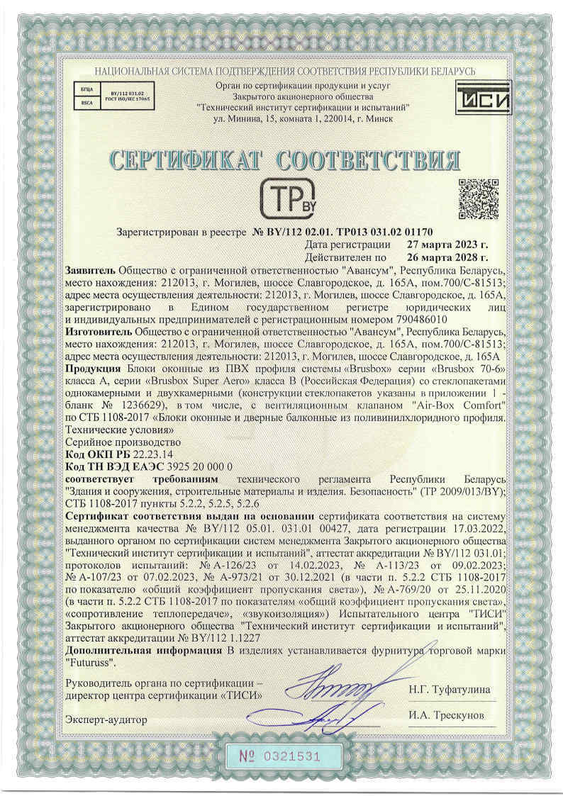 Окно пластиковое Brusbox 70-5