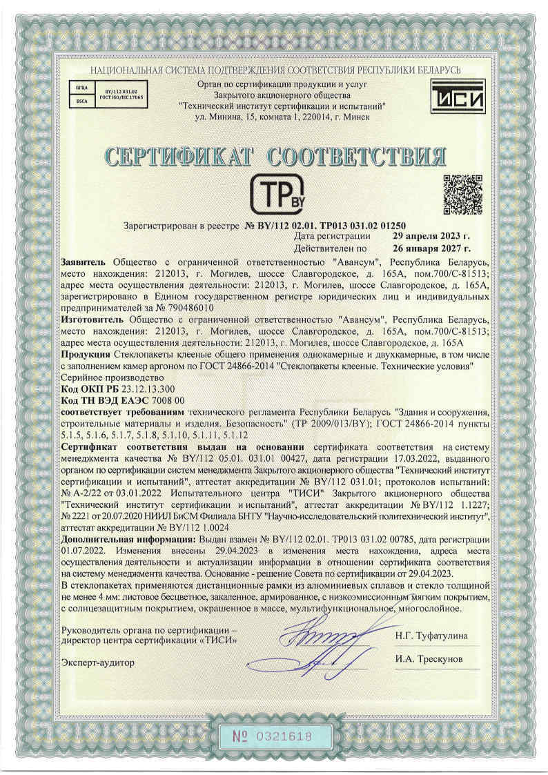 Стеклопакет: 24мм энергосберегающий